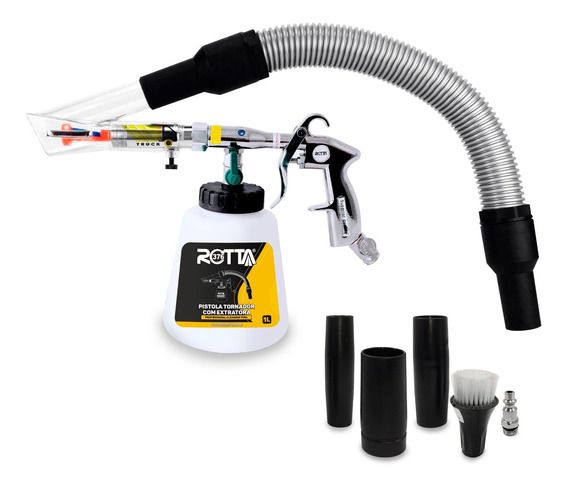 A PISTOLA TORNADOR EXTRATORA É UMA ÓTIMA FERRAMENTA PARA FAZER LIMPEZA DE MOTOR E HIGIENIZAÇÃO INTERNA DE VEÍCULOS, FRISOS RODAS E GRADES. TAMBÉM SERVE PARA LIMPEZA E HIGIENIZAÇÃO DE ESTOFADOS, CARPETES, TAPETES E OUTROS. POSSUI UM BICO TORNADOR E UM BICO EXTRATOR.
